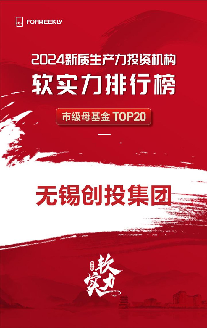 近日,《母基金周刊》(FOFWEEKLY)公布其年度排名“2024新質(zhì)生產(chǎn)力投資機(jī)構(gòu)軟實(shí)力排行榜”,無錫創(chuàng)投集團(tuán)榮登“2024新質(zhì)生產(chǎn)力投資機(jī)構(gòu)軟實(shí)力排行榜—市級(jí)母基金 TOP20”。